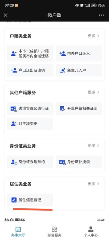 第三步:选择居住类业务,居住信息登记;