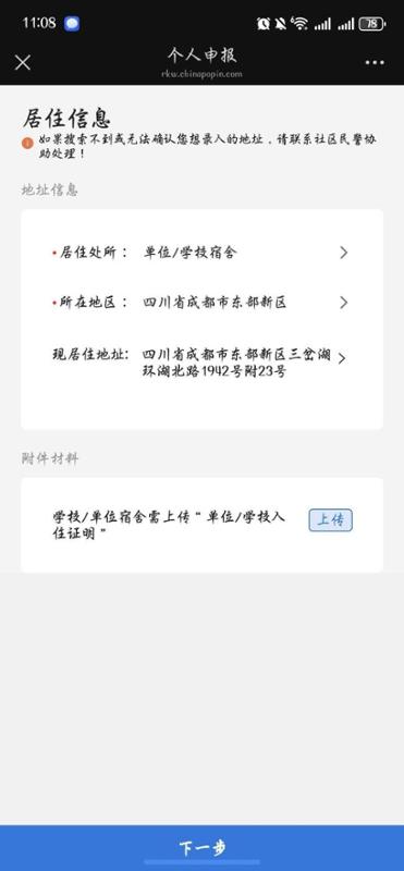第七步:完善居住地址的填写;